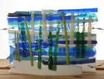 2006Verbonden delen gefusede en gebogen glas met een abstract landschap.